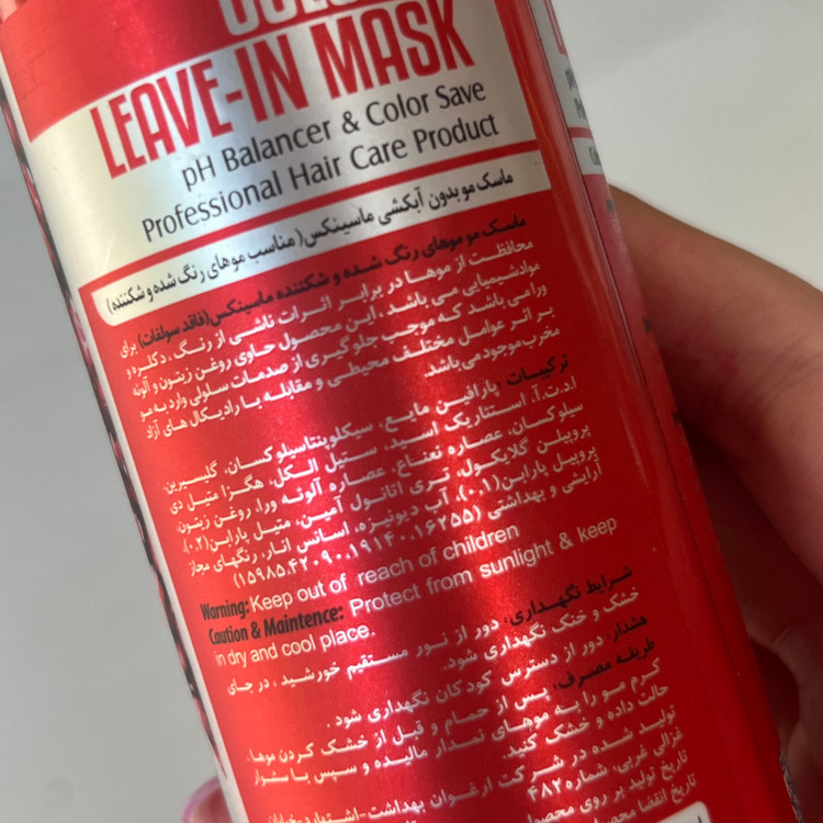آبرسانی قوی رطوبت رسان تثبیت کننده رنگ مو نرم کننده مو جلوگیری از رنگ پریدگی در اثر شستشو دارای آنتی اکسیدان قوی احیای رنگهای کدر شده تقویت کننده کاهش وزی مو و صاف نمودن سطح مو جلوگیری از ایجاد موخوره، زبری و خشکی مو ترمیم کننده درخشان کننده مراقبت عمیق و محافظت از شکستگی مو کاهش pH مو کاهش آسیبهای ناشی از مواد شیمیایی و رنگ مو حاوی روغن زیتون، عصاره آلوئه ورا، ویتامین C و E دارای عصاره انار و گلیسیرین مغذی مو افزایش نرمی و لطافت موها کمک به ساختار داخلی و بیرونی مو فاقد سولفات حجم 500 میل