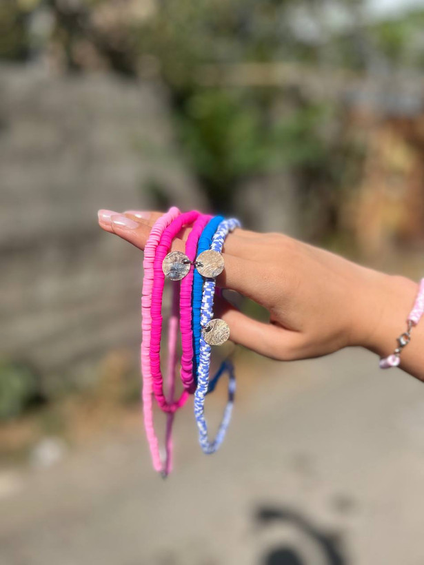 گردنبند فیمو و صدف رنگی ضد حساسیت رنگ ثابت قفل استیل است مناسب تابستان